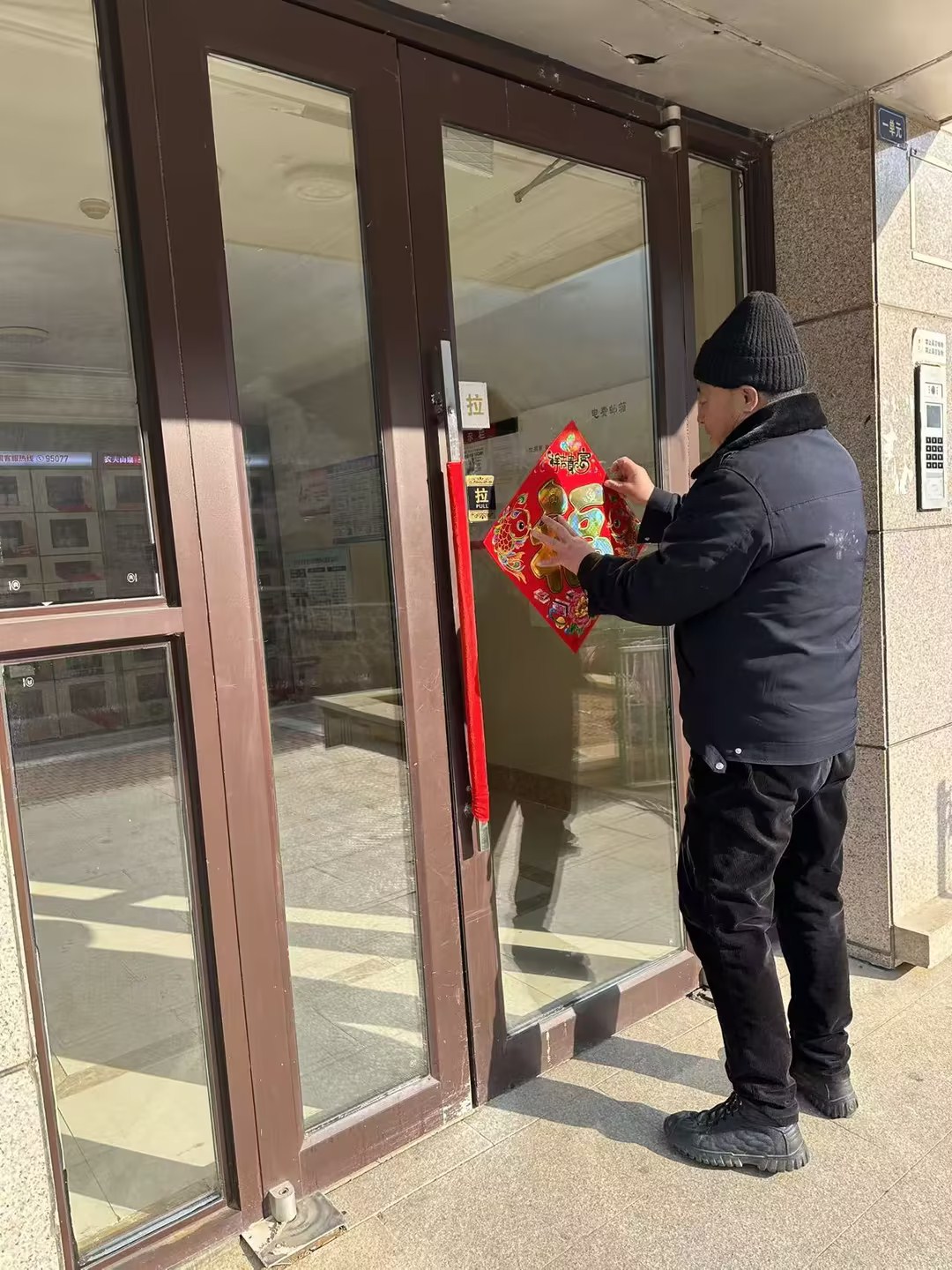 春节前夕,为营造浓厚的节日氛围,让业主归家即见喜、入户皆沾福,物业团队全面启动社区美化工程。团队协同配合,对园区主干道、中心广场、单元门入口、大堂等核心公共区域进行精细化布置:高高挂起的大红灯笼串联成喜庆长廊,烫金春联、福字窗花错落张贴,结合2026丙午马年元素的特色装饰点缀其间,让“马到成功”“龙马精神”的祝福随处可见。帮助归乡业主贴上福字,贴心举动温暖人心。