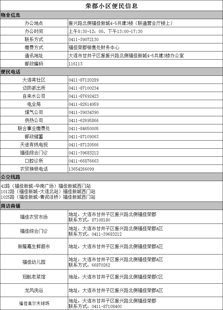 福佳荣郡便民信息